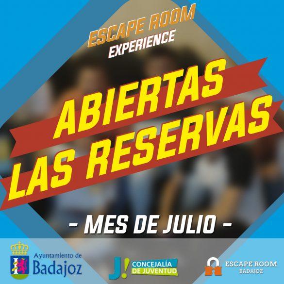 ¡Hola a todos! Ya hemos abierto las reservas para la edición del 2021 de nuestra actividad Escape Room Experience enmarcada en el programa Vive la noche en Badajoz. Si te inscribiste correctamente en la web del ayuntamiento de Badajoz y nos has enviado toda la…